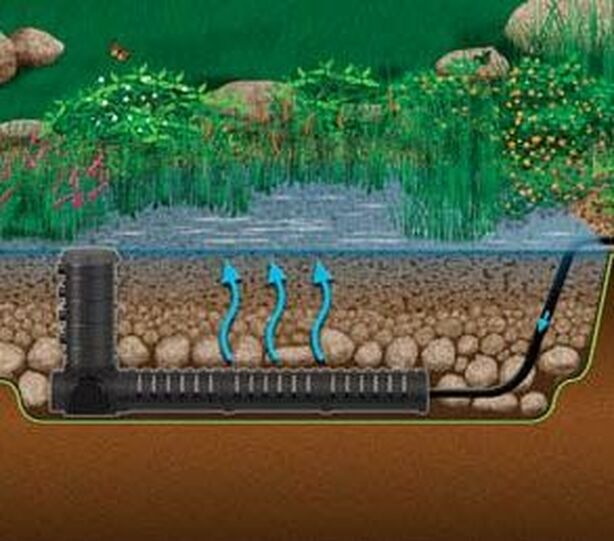 A wetland works just like a biological filter, but instead of creating a waterfall; it creates an area in your pond thick with naturally-filtering plants, as well as rocks and gravel, which provide a surface for bacterial colonization … nature’s perfect filters.